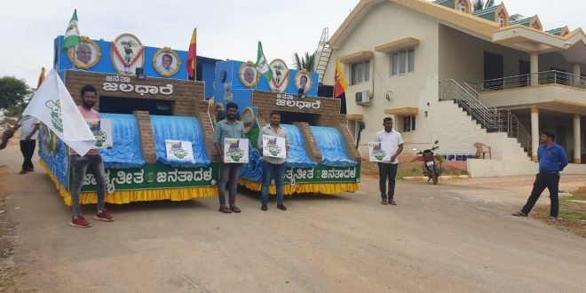 ಮೂಡಿಗೆರೆ :ಜಾತ್ಯಾತೀತ ಜನತಾದಳ ಪಕ್ಷದ ವತಿಯಿಂದ ರಾಜ್ಯಾದ್ಯಂತ ಜನತಾ ಜಲಧಾರೆ ಕಾರ್ಯಕ್ರಮ ಹಮ್ಮಿಕೊಂಡಿದ್ದು ಈ ಕಾರ್ಯಕ್ರಮದ ಅಂಗವಾಗಿ ಜನತಾ ಜಲಧಾರೆಯ ಯಾತ್ರೆರಥವನ್ನು ಜೆಡಿಎಸ್ ಪಕ್ಷದ ಮಾಜಿ ಮುಖ್ಯಮಂತ್ರಿಗಳಾದ ಶ್ರೀ ಎಚ್ ಡಿ ಕುಮಾರಸ್ವಾಮಿ ರವರ ಬಿಡದಿ ತೋಟದ ಮನೆಯಿಂದ ಜನತಾ ಜಲಧಾರೆ ಯಾತ್ರೆರಥವನ್ನು ಮೂಡಿಗೆರೆ ವಿಧಾನಸಭಾ ಕ್ಷೇತ್ರಕ್ಕೆ ಕರೆತರಲಾಯಿತು. ಈ ಜನತಾ ಜಲಧಾರೆ ಯಾತ್ರೆರಥದ ಸಂಪೂರ್ಣ ಜವಾಬ್ದಾರಿಯನ್ನು ಜೆಡಿಎಸ್ ಪಕ್ಷದ ನಾಯಕರಾದ . ಜೆಡಿಎಸ್ ಪಕ್ಷದ ಜಿಲ್ಲಾಧ್ಯಕ್ಷರಾದ ರಂಜನ್ ಅಜಿತ್ ಕುಮಾರ್ ರವರು ವಹಿಸಿದ್ದರು ಜೆಡಿಎಸ್ ಪಕ್ಷದ ವಿದ್ಯಾರ್ಥಿ ಜನತಾದಳದ ರಾಜ್ಯ ಉಪಾಧ್ಯಕ್ಷರಾದ ಇಮ್ರಾನ್ ಬಣಕಲ್. ಎಸ್ಸಿ ಎಸ್ಟಿ ವಿಭಾಗದ ಕ್ಷೇತ್ರ ಸಮಿತಿ ಅಧ್ಯಕ್ಷರಾದ ಸುರೇಶ್ ಮಕೊನಹಳ್ಳಿ. ಅಲ್ಪಸಂಖ್ಯಾತರ ಘಟಕದ ಕ್ಷೇತ್ರ ಸಮಿತಿ ಅಧ್ಯಕ್ಷರಾದ ನಾಸೀರ್. ಅಲ್ಪಸಂಖ್ಯಾತರ ಟೌನ್ ಅಧ್ಯಕ್ಷರಾ ಆಸಿಫ್ ಬಾಪು ನಗರ. ಇವರ ಸಮ್ಮುಖದಲ್ಲಿ ಜನತಾ ಜಲಧಾರೆಯಾತ್ರೆ ರಥವನ್ನು ಮೂಡಿಗೆರೆ ವಿಧಾನಸಭಾ ಕ್ಷೇತ್ರಕ್ಕೆ ಕರೆತರಲಾಯಿತು.